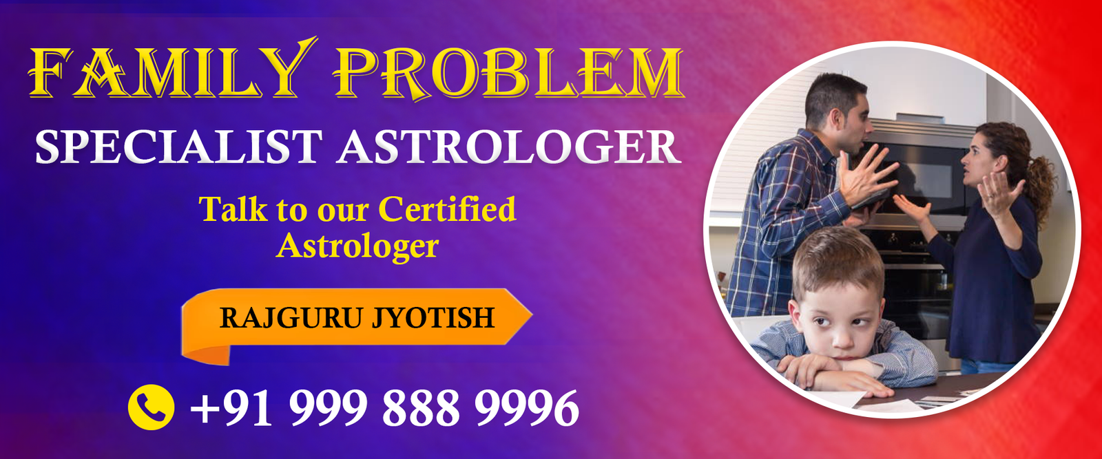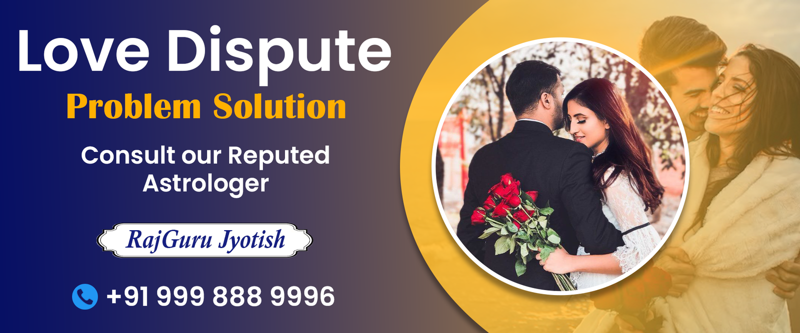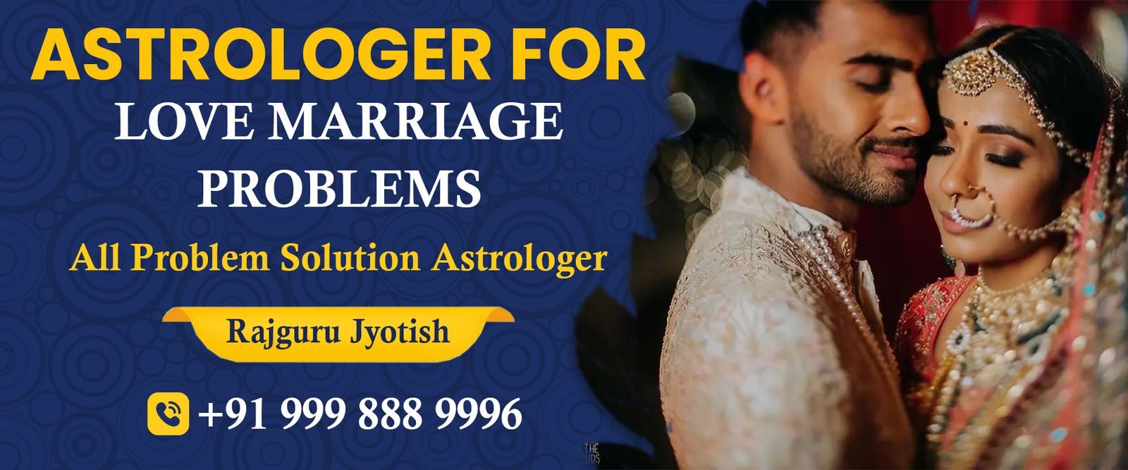 Astrologer Rajesh Guruji, is an Love Problem Specialist Astrologer who has made people to believe in astrology to serve people. Many people come to him for the solution and under his guidance; they are able to get solution to their problems. He is a person that has made people to believe in spirituality and astrology just to make life better. His clientele is spreading across the world just because of his work. The true predictions, genuine astrological solution and affordable services have made him popular.
